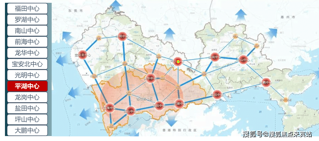 平湖核心取福田核心、南山核心等共12个城市核心将延续深圳多核心、组团式的空间布局,
